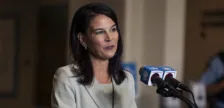 Als Annalena Baerbock kurz nach 12 Uhr Ortszeit vor die Kameras der…