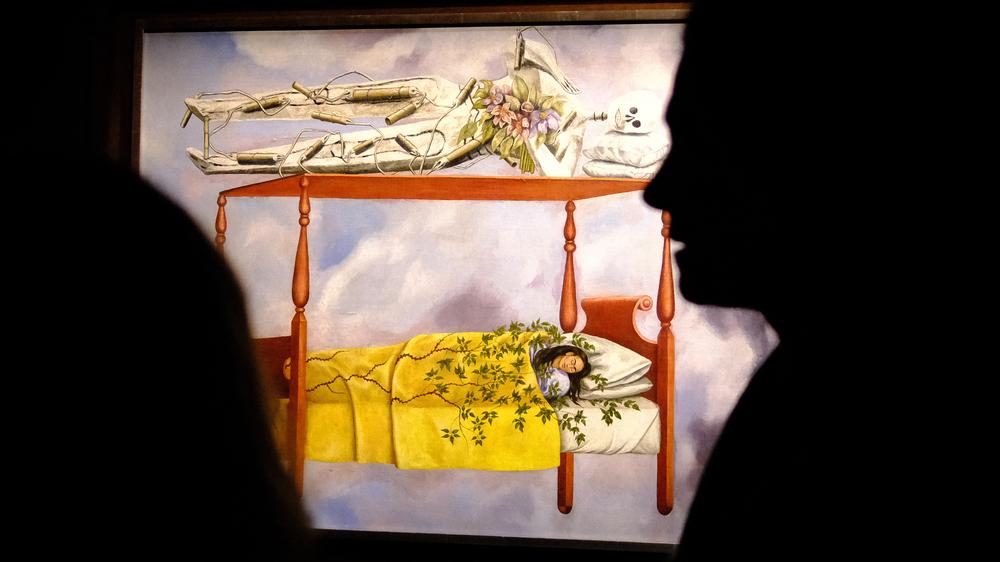 Das Werk zeigt die Künstlerin schlafend in einem Bett, das am Himmel zu schweben scheint. Darauf liegt ein riesiges Skelett, dessen Beine mit Dynamit umwickelt sind. Dieses Gemälde von Frida Kahlo sei ein „sehr persönliches“ Bild, in dem „sie folkloristische Motive der mexikanischen Kultur mit dem europäischen Surrealismus verschmilzt“, sagte Anna Di Stasi von der Sotheby’s-Abteilung für lateinamerikanische Kunst.