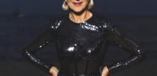 Helen Mirren se encuentra en el sofá negro de la oficina del…