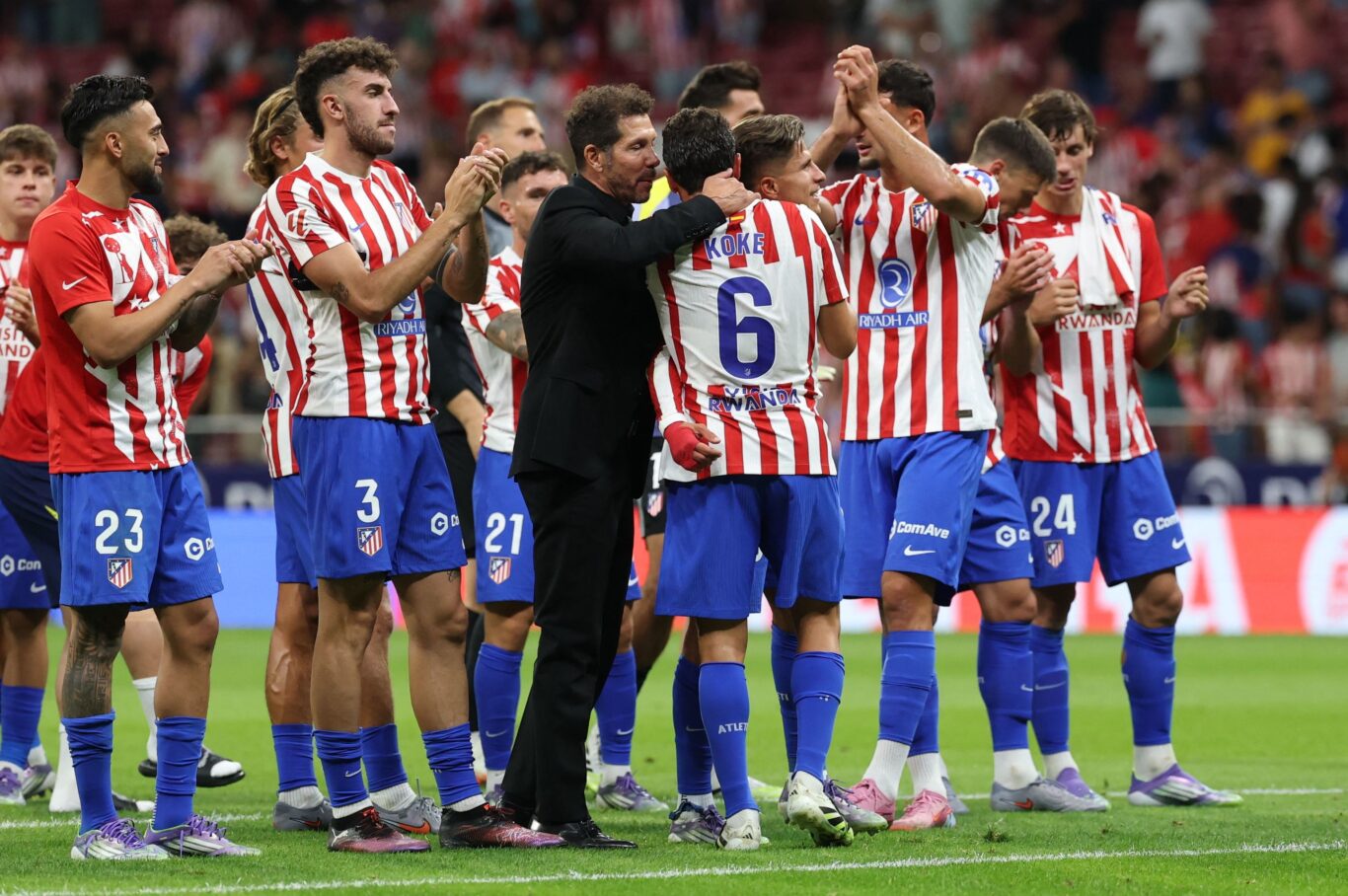 Primera titularidad para el capitán y para Antoine Griezmann, «historia viva» del Atlético, como les llamó Simeone, y primera victoria del curso. «Cuando hablo de ellos me viene emoción porque son la historia viva del Atlético y están dentro del grupo sabiendo el lugar que van a ocupar y hoy era un partido para ellos, para la jerarquia y templanza que ellos tienen», alabó el entrenador a sus pupilos.