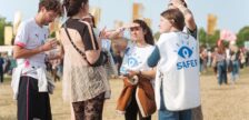 Sur la musique de Lucky Love, trois bénévoles arpentent les pelouses du…