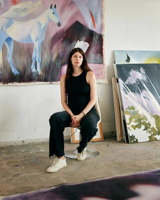L’atmosphère est fébrile au 11e étage de la tour Orion, à Montreuil (Seine-Saint-Denis), en cette fin d’après-midi du vendredi 27 juin. Etalées sur le sol, trois toiles de 170 × 77 centimètres attendent d’être roulées et glissées dans un tube en carton. Dans son atelier haut perché, l’artiste d’origine ukrainienne Polina Moroz, enceinte de six mois, s’apprête à expédier ses peintures à la Cité radieuse, à Marseille.